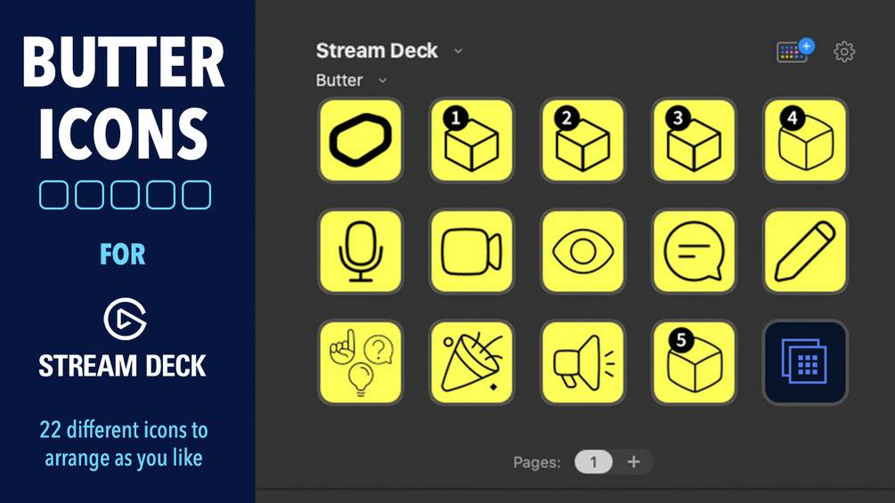 22 Butter icons for Stream Deck, plus a set-up guide text file.