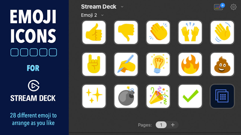 This is a set of icons for Stream Deck to display 28 different Emoji. This set includes: